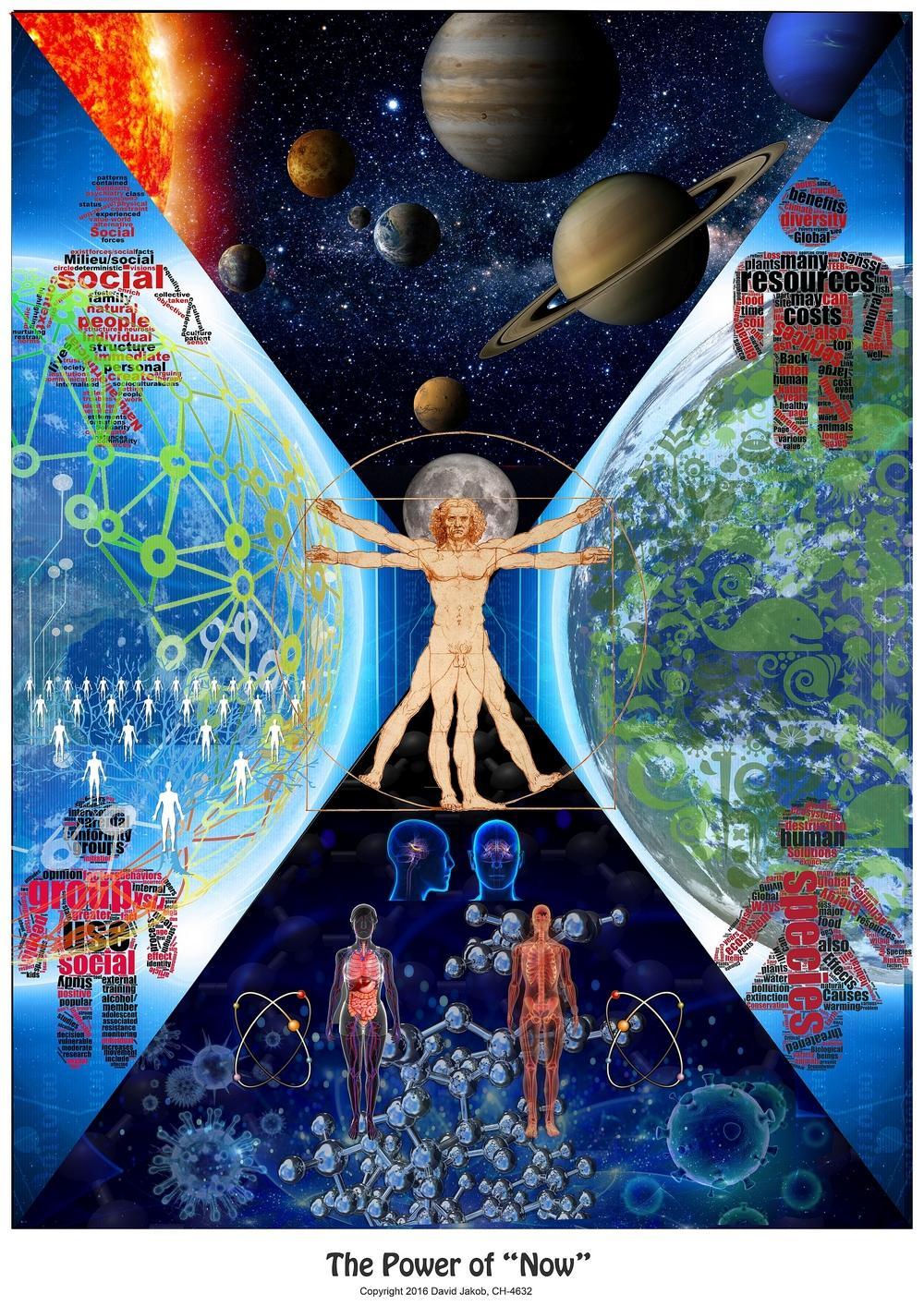 I’ve placed the well-known image of the Vitruvian Man by Leonardo da Vinci at the intersection to represent a human being at the Moment “Now”. It is there as a representation and is certainly not meant to indicate only the male of the species. It's meant to be neutral, but I found nothing to represent genderless. My apologies to anyone who finds it offensive.